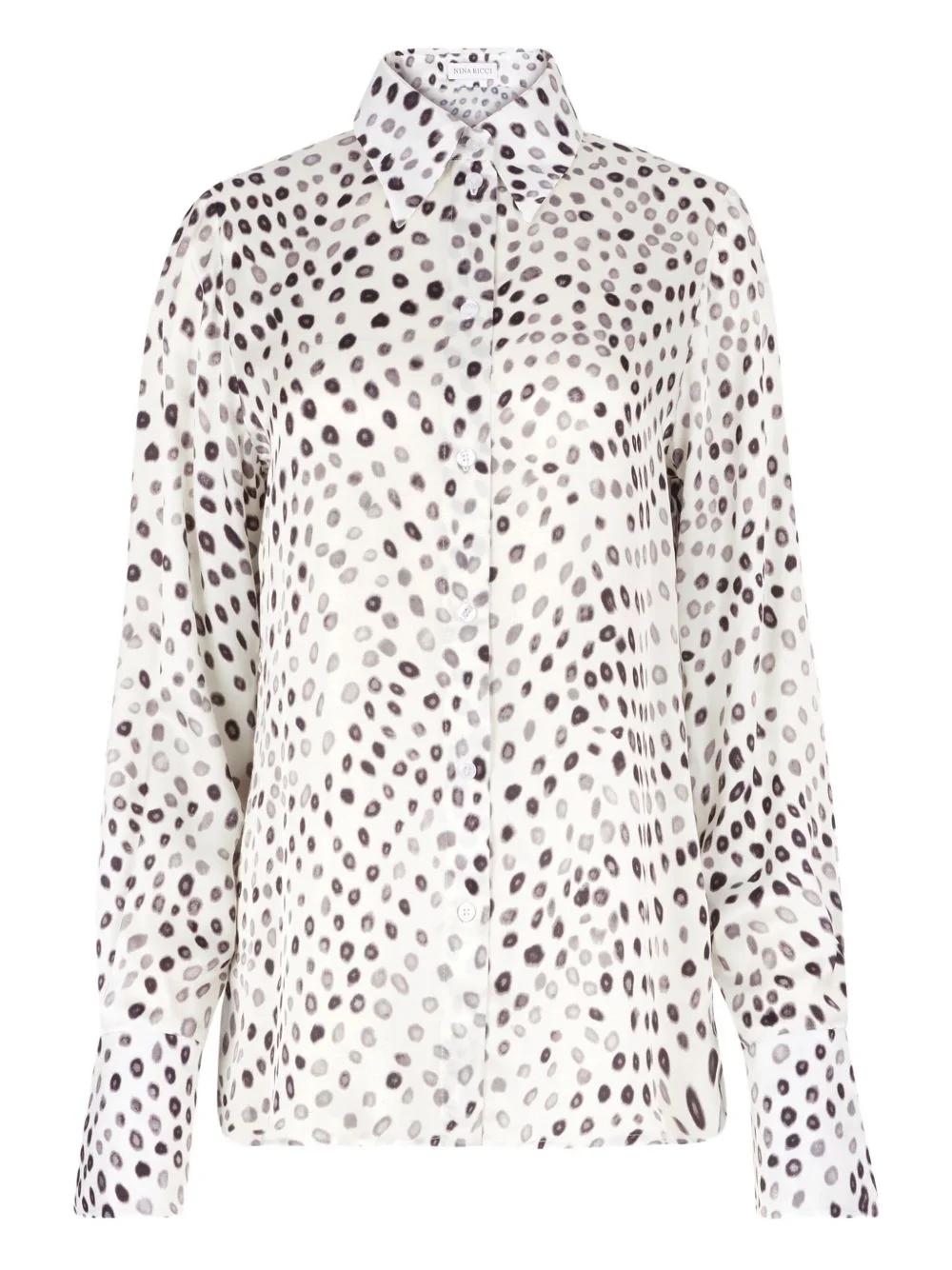 polka-dot bell-cuffs shirt Highlights - White - Polka dot pattern - Bell cuffs - Long sleeves - Button fastening Imported Composition Viscose 100% Washing instructions Dry Clean Only