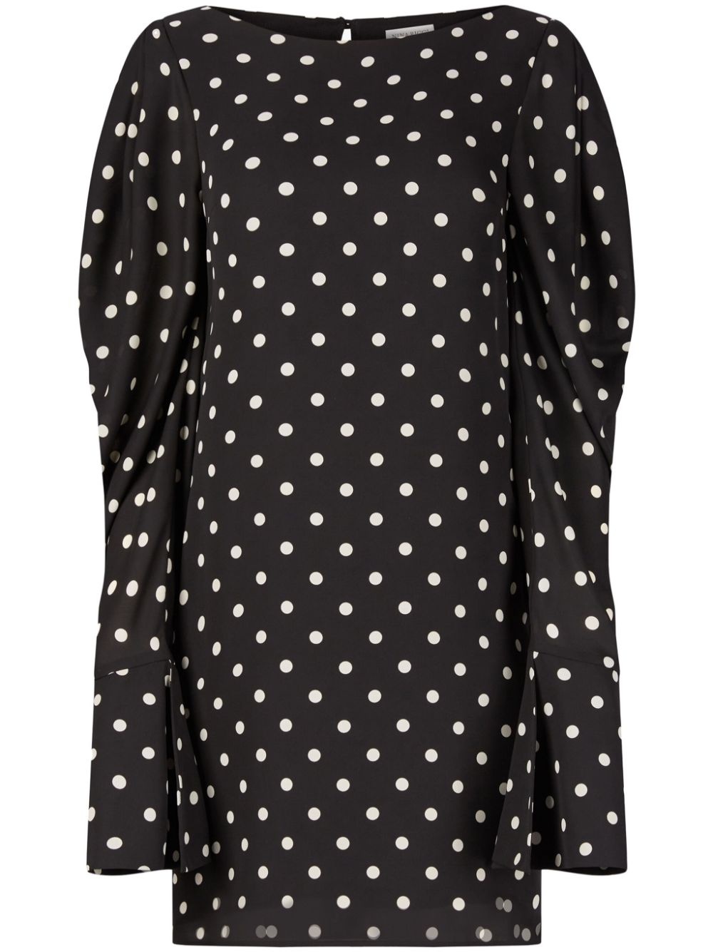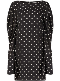 polka-dot print shift dress Highlights - Black/white - Crepe texture - Polka dot print - Boat neck - Rear button fastening - Keyhole neck - Long ruched sleeves - Above-knee length - Straight hem Imported Composition Lining: Viscose 100% Outer: Polyester 100%