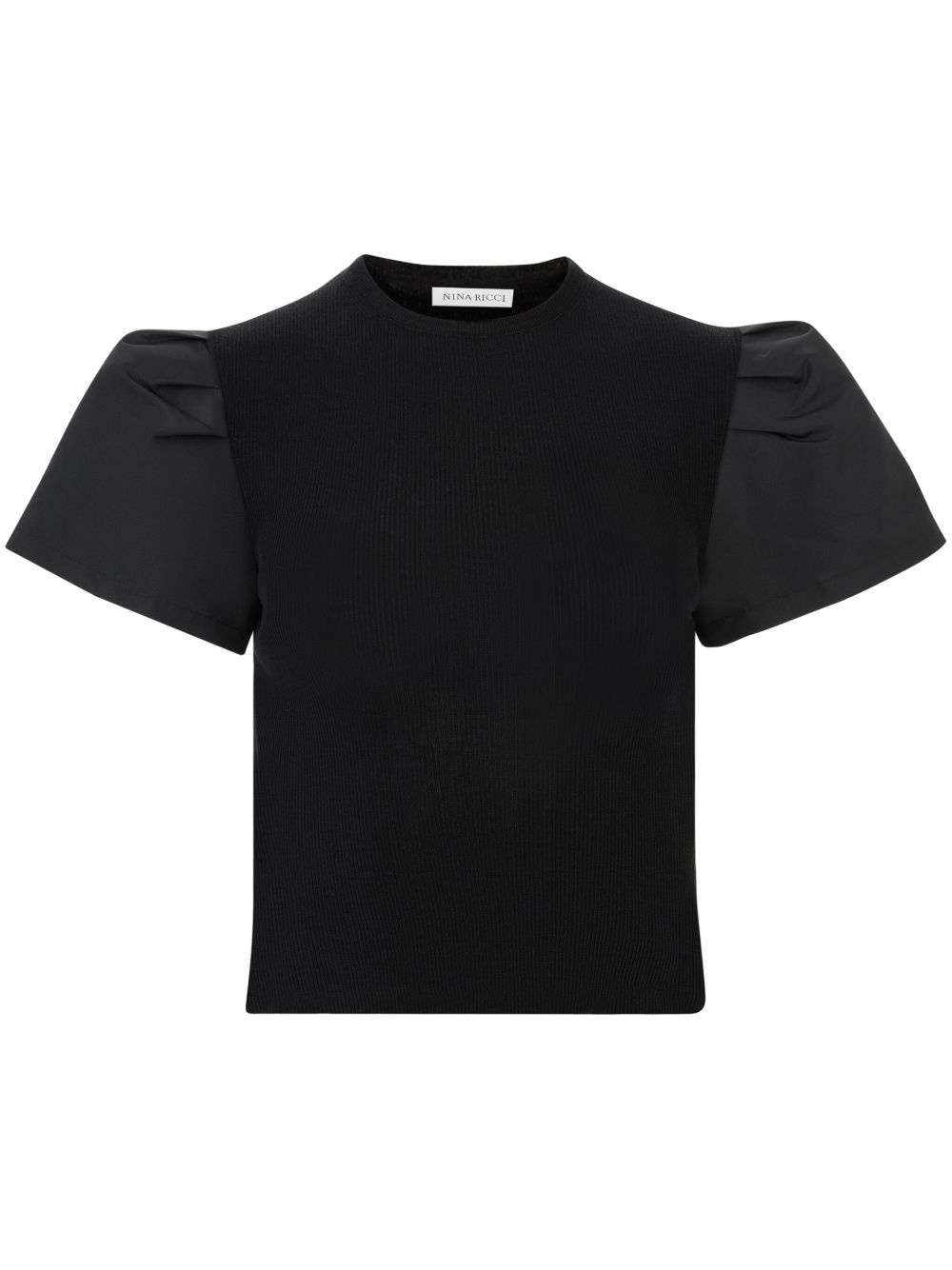 puff-sleeve T-shirt Highlights - Black - Cotton blend - Panelled design - Crew neck - Short puff sleeves - Straight hem - Cropped Imported Composition Cotton 82%, Polyamide 18% Washing instructions Dry Clean Only