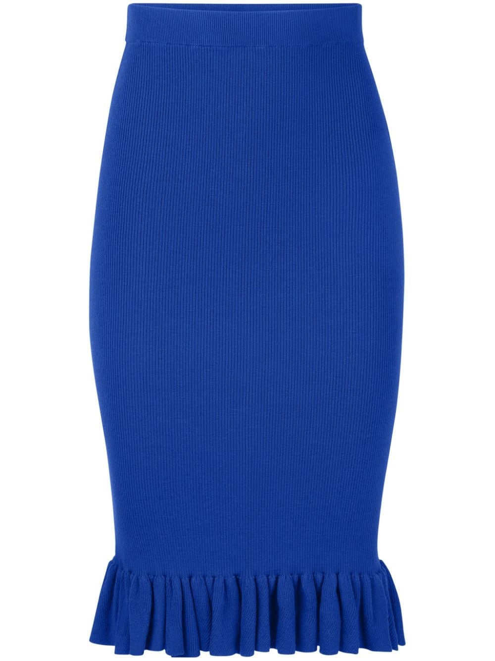ruffled peplum skirt Highlights - Electric blue - Wool blend - Peplum hem - Ribbed knit - Elasticated waistband Imported Composition Base: Wool 87%, Polyamide 11% Washing instructions Read Manufacturer Guidelines