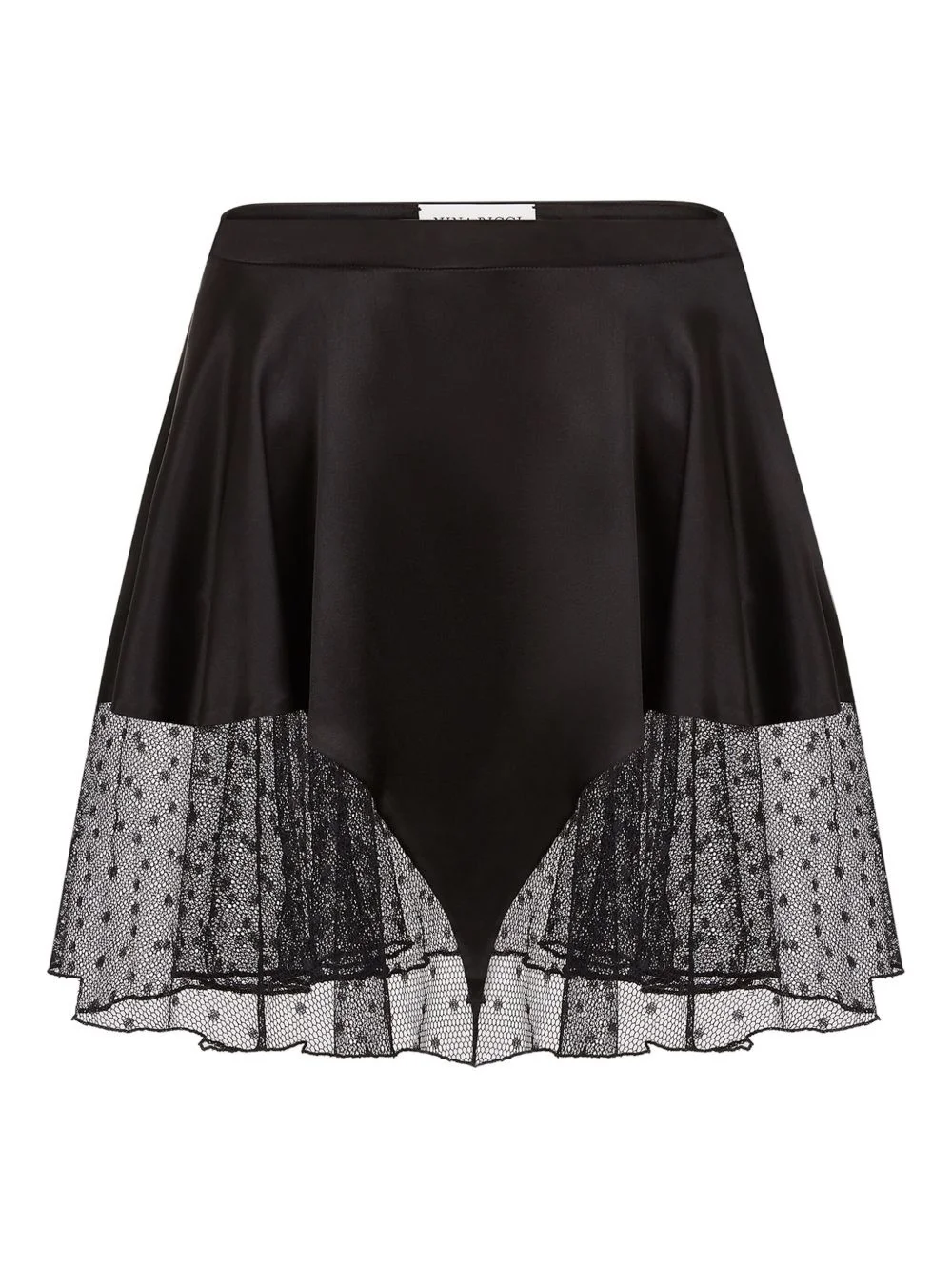 satin lace-trimmed skirt Highlights - Black - Satin fabric - Lace trim - Scalloped hem - A-line shape Imported Composition Viscose 53%, Silk 37%, Fabric 10% Washing instructions Dry Clean Only