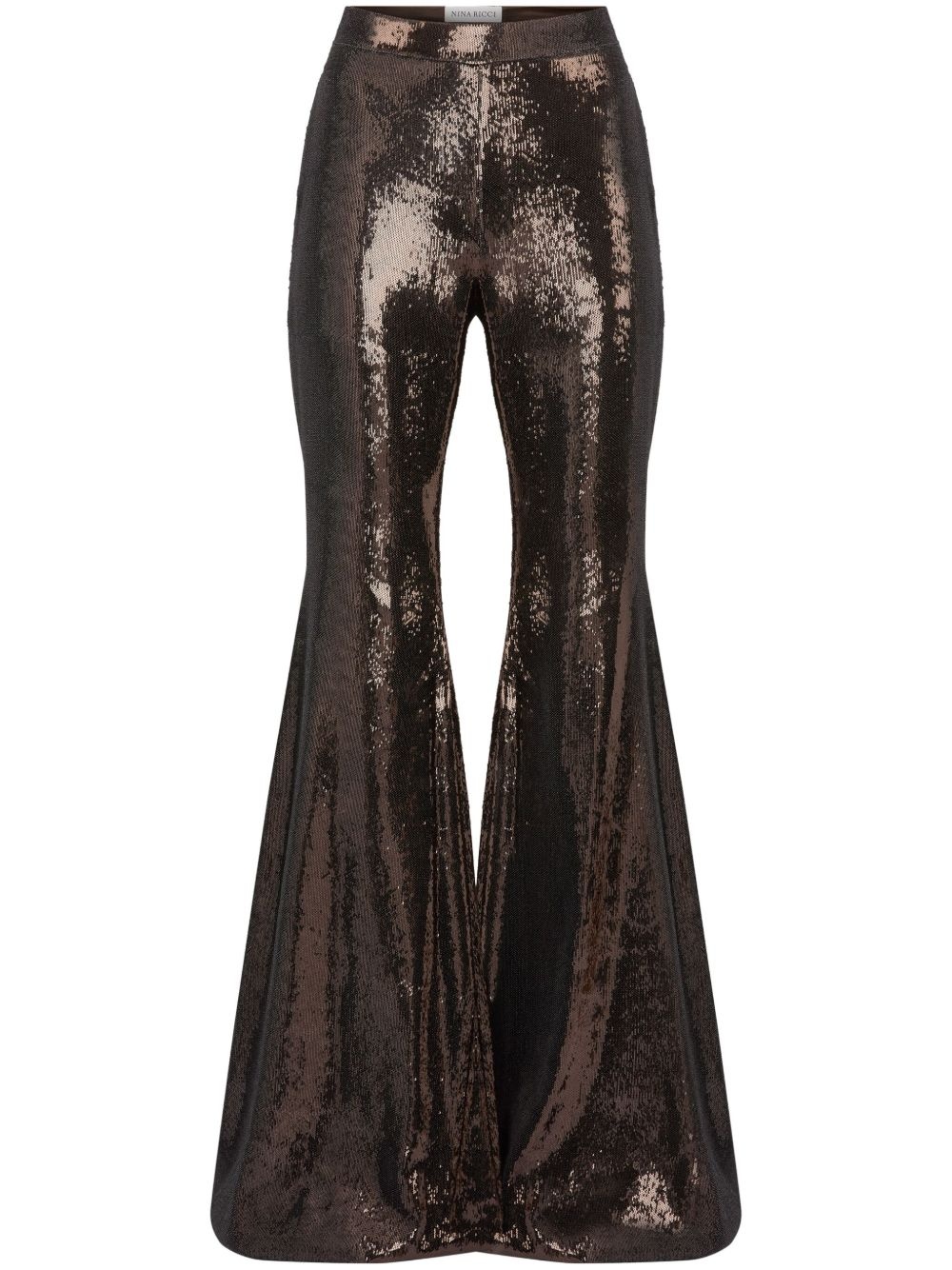 sequin-embellished flared trousers Highlights - Brown - Sequin embellishment - Flared design - Elasticated waistband - Pleat detailing - Floor-length Imported Composition Silk 100%, Sequin 100%, Polyester 100%