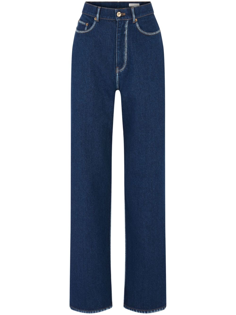straight-leg jeans Highlights - Indigo blue - Cotton - Denim - Straight leg - Concealed fly and button fastening - Contrast stitching - High-rise - Classic five pockets Imported Composition Cotton 100%