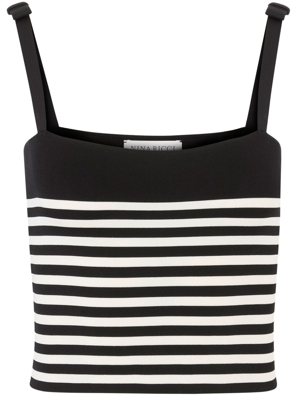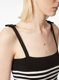 striped knitted tank top Highlights - Black/white - Fine knit - Horizontal stripe print - Thin shoulder straps - Bow detailing - Square neck - Straight hem - Cropped Imported Composition Fabric 100%, Viscose 91%, Polyamide 9%