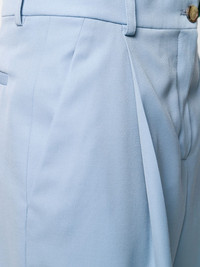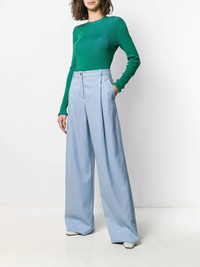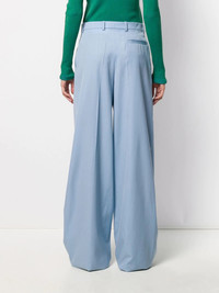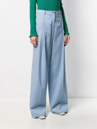 super flared trousers Light blue virgin wool super flared trousers from Nina Ricci featuring a waistband with belt loops, a front button fastening, side pockets, a back pocket and a long length. Imported Composition Virgin Wool 100% SIZE & FIT Model measurements Height 5 ft 9 in(1.76 m) Bust/Chest 33.07 in(84 cm) Hips 34.64 in(88 cm) Waist 25.59 in(65 cm) FittingInformation This piece fits true to size. We recommend you get your regular size Cut for a loose fit Made with a mid-weight non-stretch fabric Washing instructions Dry Clean Only