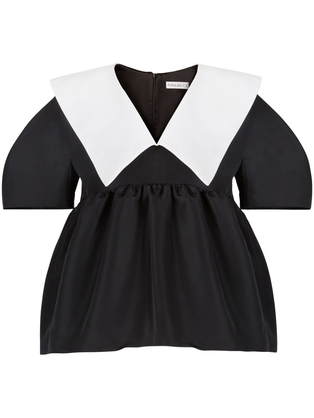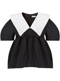 Taffeta v-neck top Highlights - Black/white - V-neck - Contrasting collar - Short sleeves - Straight hem Imported Composition Base: Polyester 100% Lining: Viscose 100% Washing instructions Read Manufacturer Guidelines