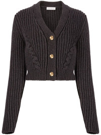 V-neck knit cardigan Highlights - Dark grey - Wool-cashmere blend - Chunky knit - Front button fastening - Gold-tone hardware - V-neck Imported Composition Wool 90%, Cashmere 10% Washing instructions Read Manufacturer Guidelines