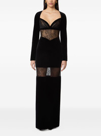 velvet lace-insert dress Highlights - Black - Velvet - Lace panels - Long sleeves - Sweetheart neckline - Fitted silhouette Imported Composition Cotton 100% Washing instructions Dry Clean Only