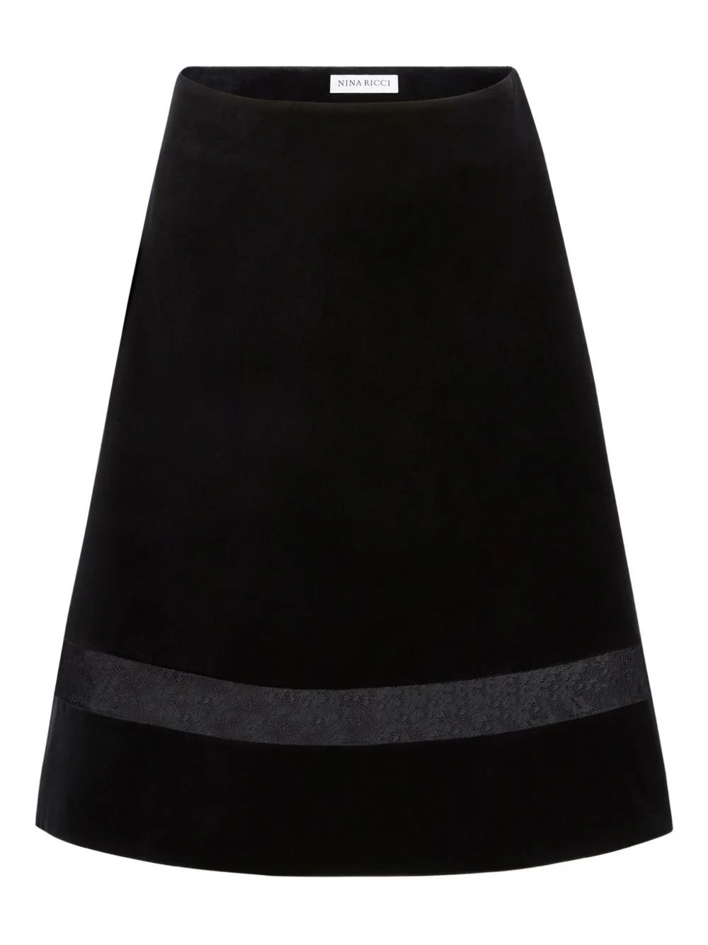 velvet lace-insert mini skirt Highlights - Black - Velvet - Lace insert - A-line shape - Sheer panel Imported Composition Lining: Viscose 100% Outer: Cotton 100% Washing instructions Dry Clean Only