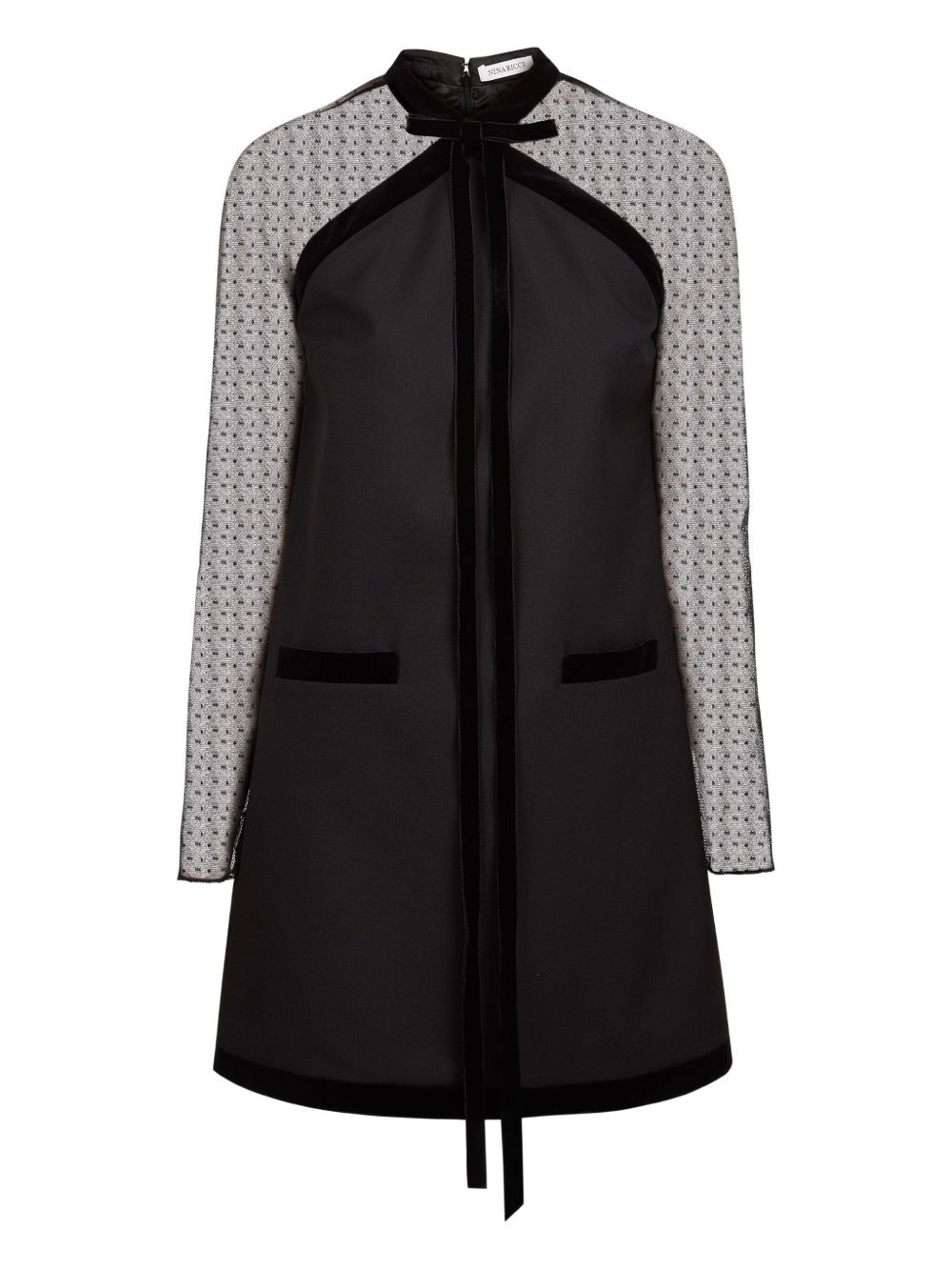 velvet-trimmed tulle-sleeve minidress Highlights - Black - Velvet trim - Tulle sleeves - Polka dot pattern - Bow tie neck - Faux-pockets Imported Composition Lining: Viscose 100% Outer: Virgin Wool 100% Washing instructions Dry Clean Only