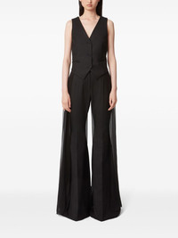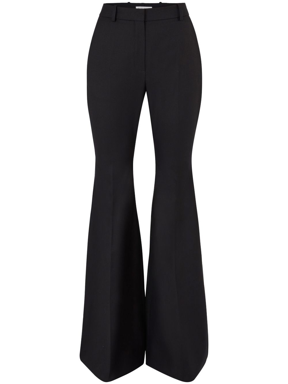 wool gabardine flared trousers Highlights - Black - Wool - Gabardine weave - Flared design - Concealed front fastening - Belt loops - Slip pockets to the sides - Pleat detailing Imported Composition Wool 100%