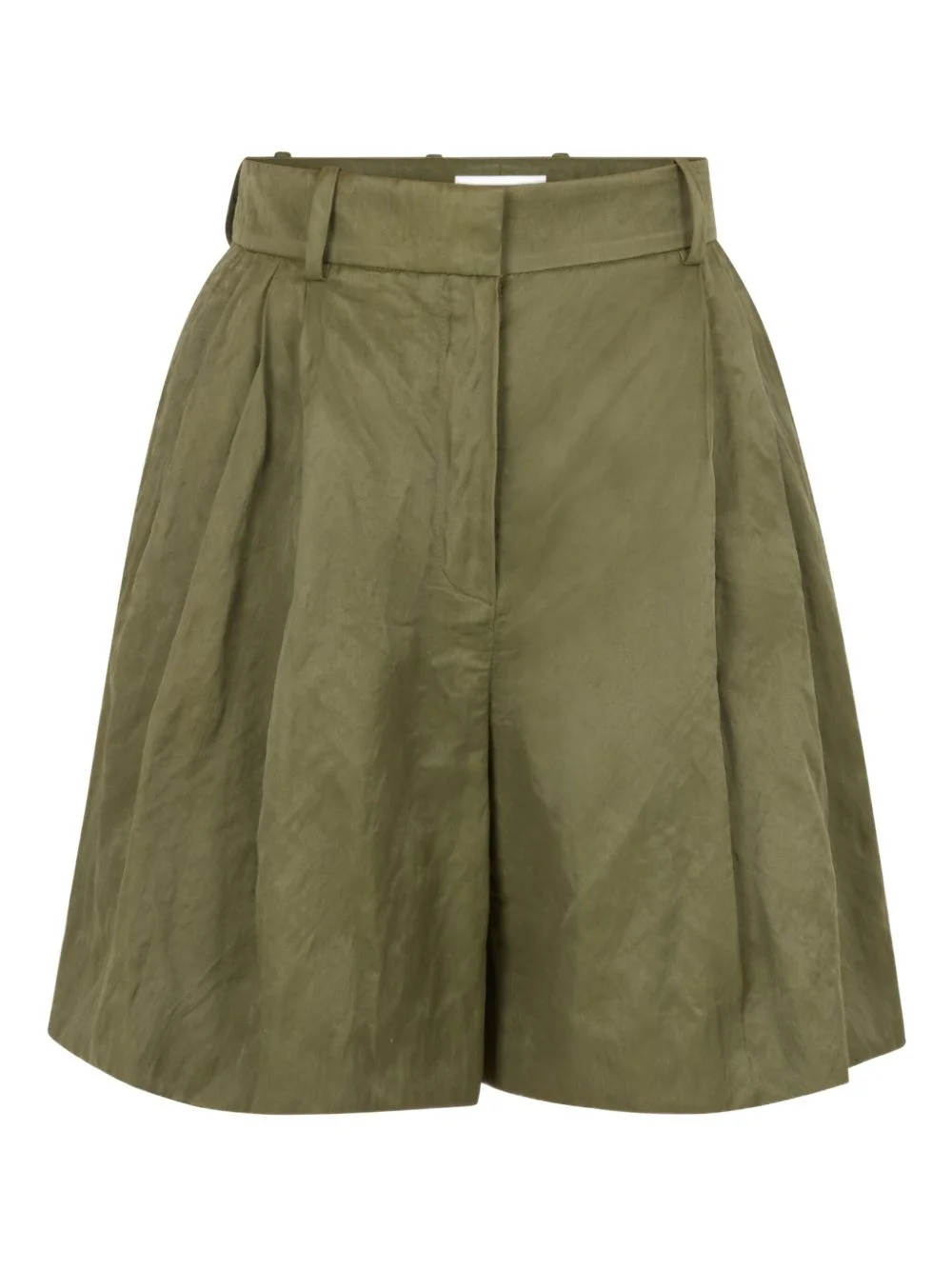 wrinkled cotton tailored shorts Highlights - Green - Wrinkled effect - Belt loops - Front pleats - Concealed fastening - Side pockets Imported Composition Cotton 100% Washing instructions Dry Clean Only