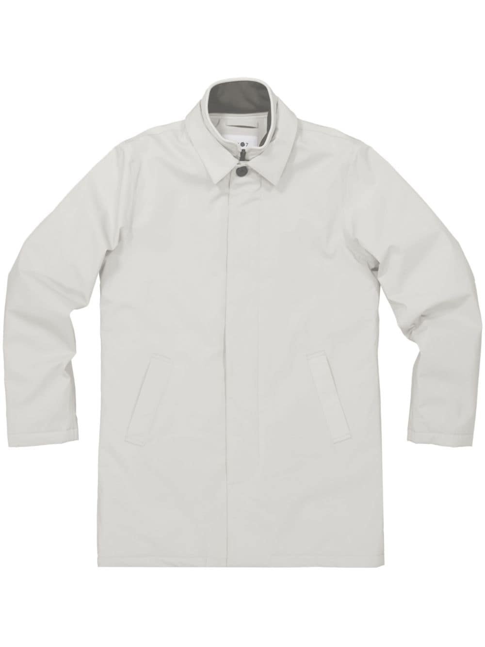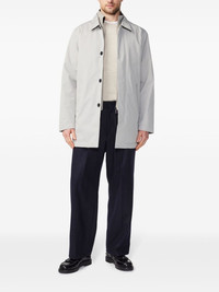 Blake single-breasted coat Highlights - Light grey - Recycled polyester blend - Concealed front fastening - Spread collar - Two side welt pockets - Long sleeves - Straight hem Imported Composition Recycled Polyester 85%, Polyurethane 15% Washing instructions Machine Wash