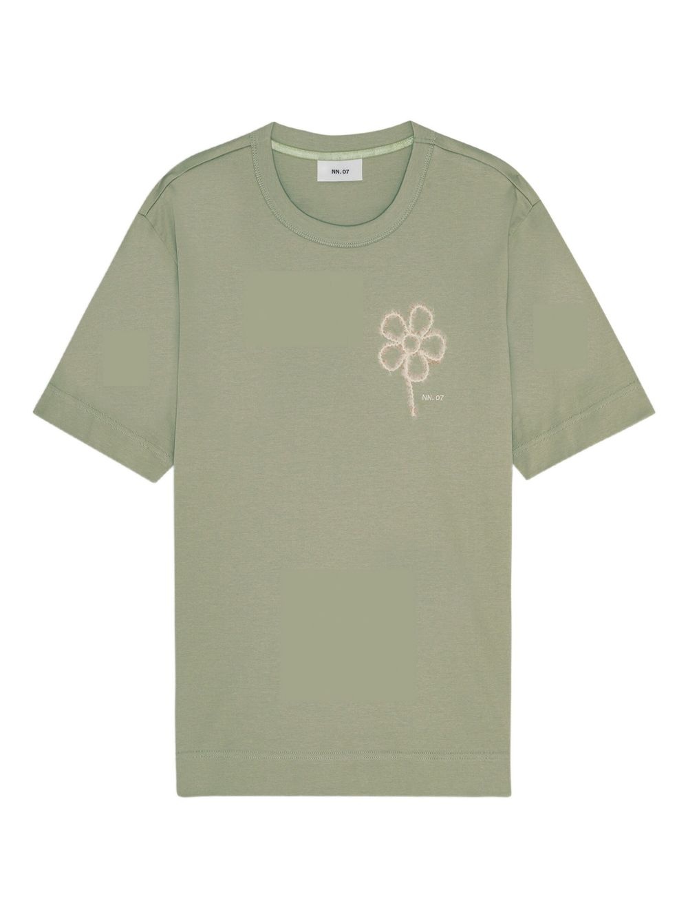 floral-embroidered T-shirt Highlights - Sage green - Embroidered logo at the chest - Round neck - Short sleeves - Straight hem Imported Composition Organic Cotton 100%