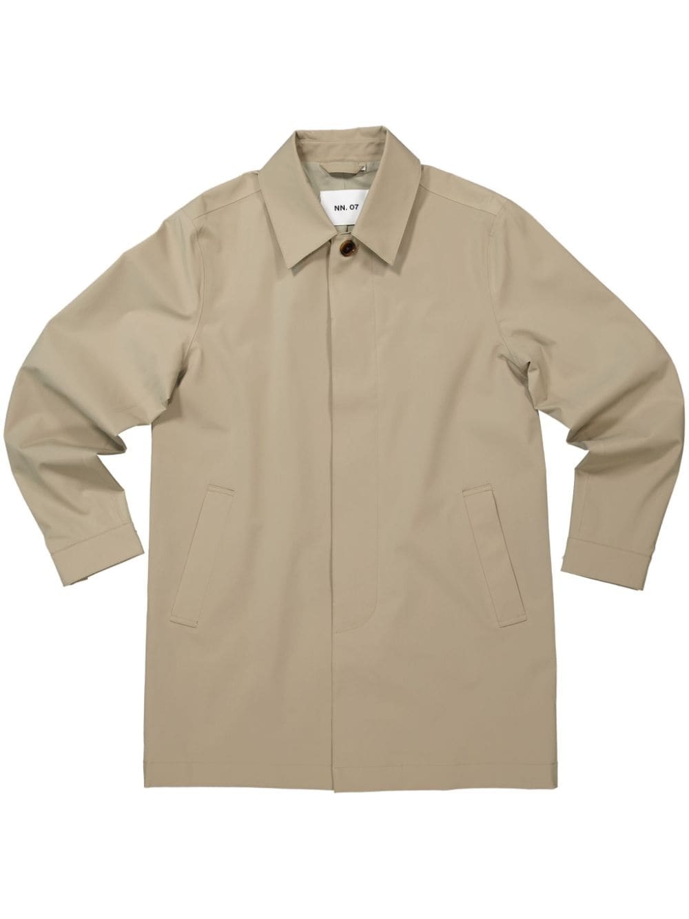 Kim single-breasted coat Highlights - Sand beige - Concealed front fastening - Classic collar - Two side welt pockets - Long sleeves - Straight hem Imported Composition Polyester 85%, Polyurethane 15%