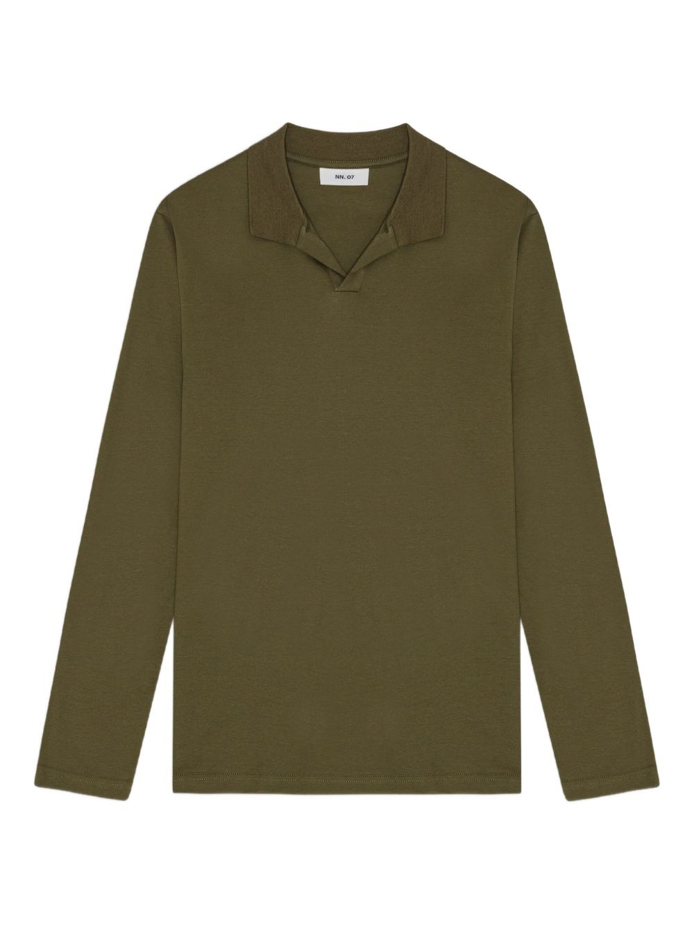 long-sleeve polo-collar t-shirt Highlights - Olive green - Long sleeves - Polo collar - Straight hem Imported Composition Organic Cotton 100% Washing instructions Read Manufacturer Guidelines