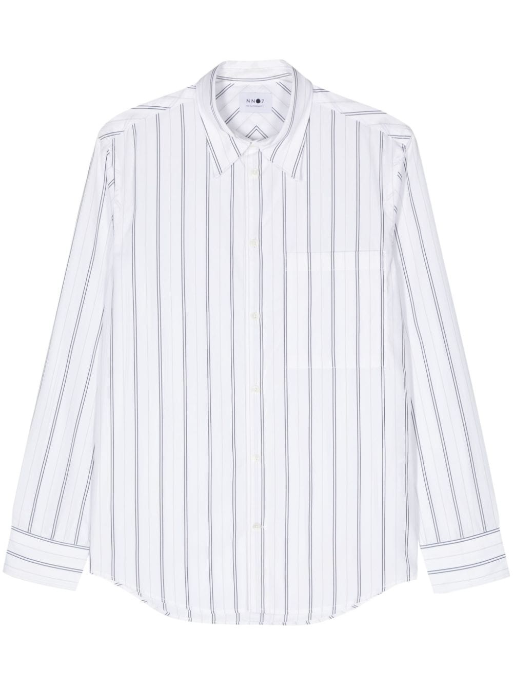 Max striped poplin shirt Highlights - White/navy blue/grey - Cotton - Poplin texture - Vertical stripe pattern - Straight-point collar - Long sleeves - Buttoned cuffs - Curved hem - Curved hem - Front button fastening Imported Composition Cotton 100%