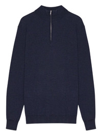 Sergio sweater Highlights - Navy blue - Long sleeves - Zip neck - Ribbed cuffs - Minimal design - Lightweight construction Imported Composition Wool 100% Washing instructions Hand Wash