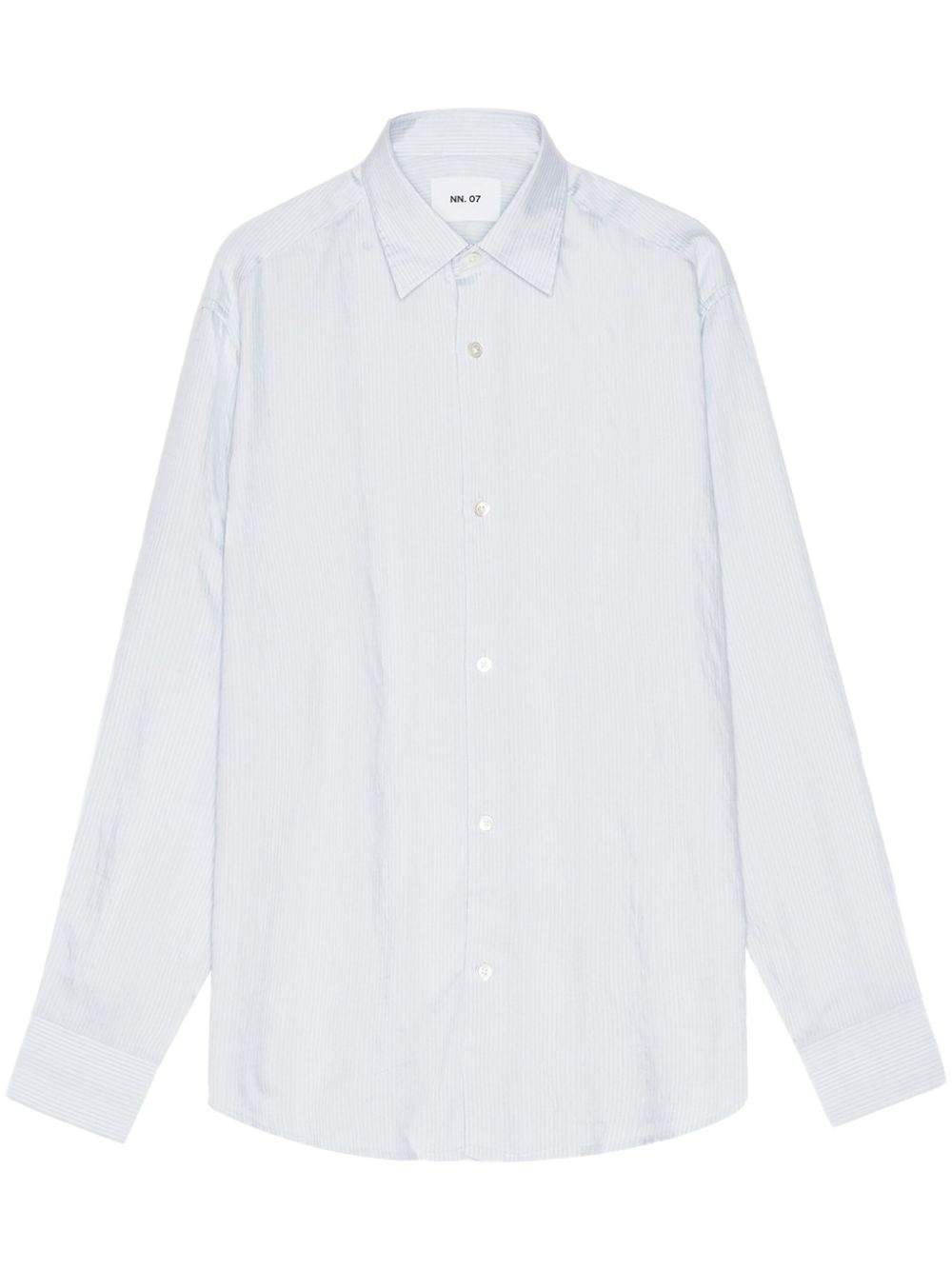striped shirt Highlights - Light blue - Front button fastening - Curved hem - Straight-point collar - Vertical stripe pattern Imported Composition TENCEL™ Lyocell (LENZING) 88%, Polyamide 12% SIZE & FIT Measurement CHEST 42.51 in(108 cm) SLEEVE LENGTH 34.25 in(87 cm) LENGTH 30.51 in(77.5 cm)