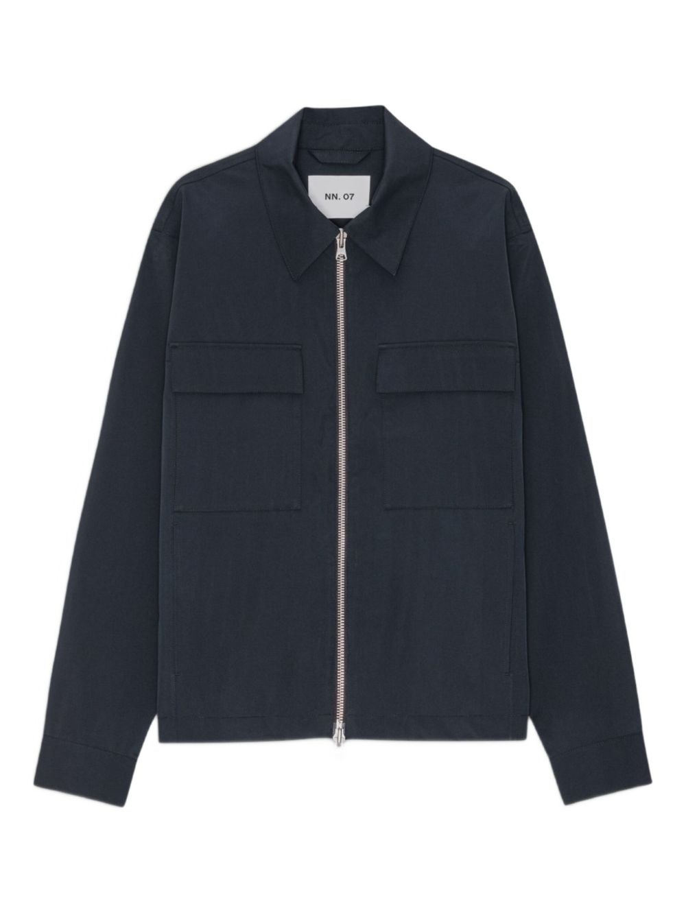 zip-up utility jacket Highlights - Navy blue - Two front flap pockets - Front zip fastening - Pointed collar - Long sleeves Imported Composition Polyester 85%, Polyurethane 15%