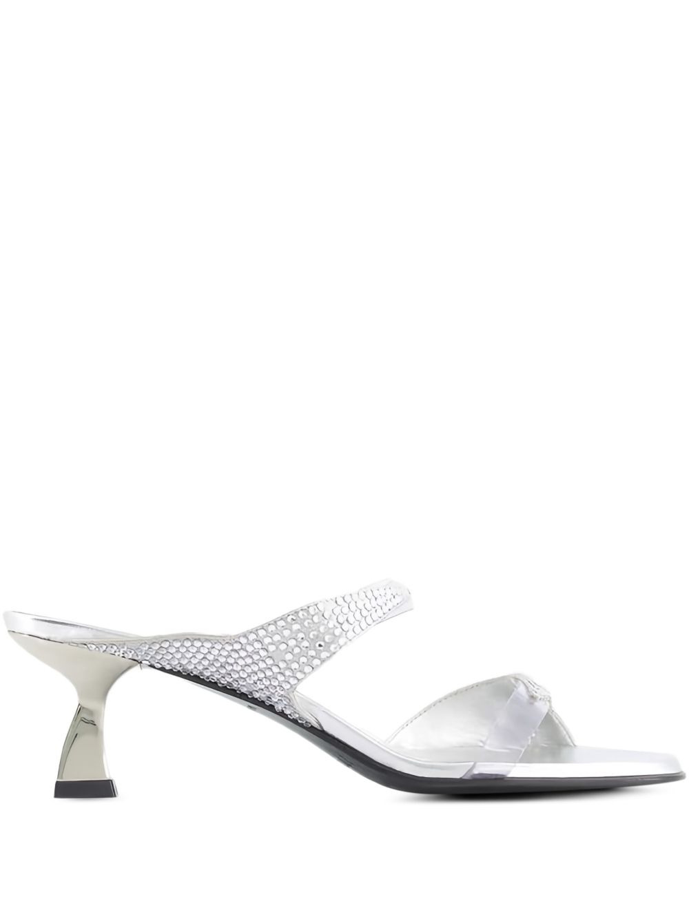 50mm Dona Luna heeled sandals Highlights - Silver-tone - Rhinestone embellishment - Square toe - Sculpted heel - Slip-on style Made in Italy Composition Outer: Nappa Leather 100%, Polyurethane 100%, Rhinestone 100% Lining: Leather 100% Sole: Rubber 100% SIZE & FIT Measurement HEEL 1.96 in(5 cm)