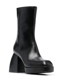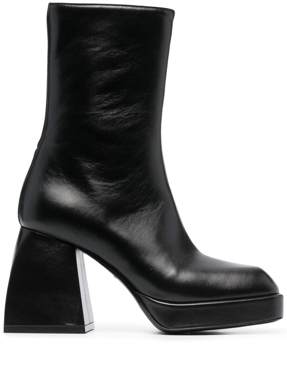 block-heel leather boots black leather square toe side zip fastening branded insole platform sole high block heel Made in Italy Composition Outer: Leather 100% Lining: Leather 100% Sole: Leather 100%