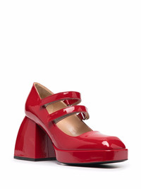 Bulla Babies 65 leather pumps red leather square toe double-strap design mid block heel Made in Italy Composition Lining: Leather 100% Sole: Leather 100%, Rubber 100%