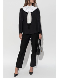 bow detailing blouse Highlights - White - Metallic sheen - Oversize bow detail - Front button fastening - Rear button fastening - Band collar - Gathered detailing - Long mutton sleeves - Buttoned cuffs - Curved hem Imported Composition Polyester 60%, Nylon 40% Washing instructions Read Manufacturer Guidelines