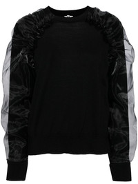 cut-out detailing jumper Highlights - Black - Wool - Organza - Knitted construction - Cut-out detailing - Ribbed cuffs and hem - Crew neck - Long sleeves Imported Composition Lining: Polyester 100% Outer: Wool 100% SIZE & FIT Model measurements Height 5 ft 9 in(1.76 m) Bust/Chest 31.1 in(79 cm) Hips 35.03 in(89 cm) Waist 24.4 in(62 cm) FittingInformation Designed for a relaxed fit, this piece allows for comfort and movement when worn Made with a lightweight knit, this piece offers some stretch