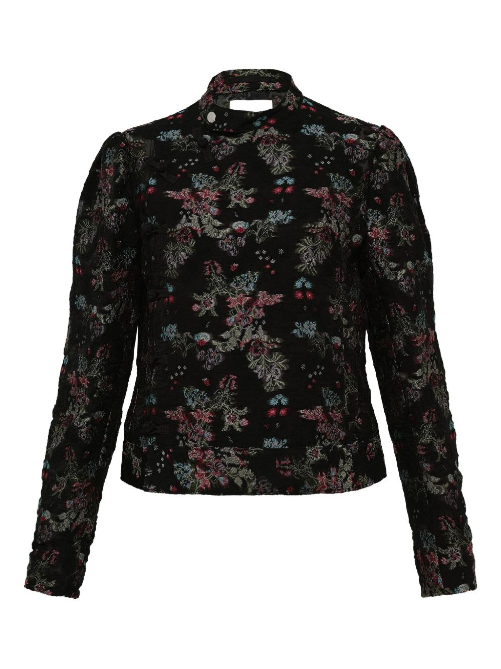 floral-jacquard jacket Highlights - Black - Floral pattern - Long sleeves - High neck - Front button fastening - Jacquard weave Imported Composition Outer: Cotton 40%, Polyester 38%, Cupro 14%, Nylon 8% Lining: Polyester 100% Washing instructions Read Manufacturer Guidelines