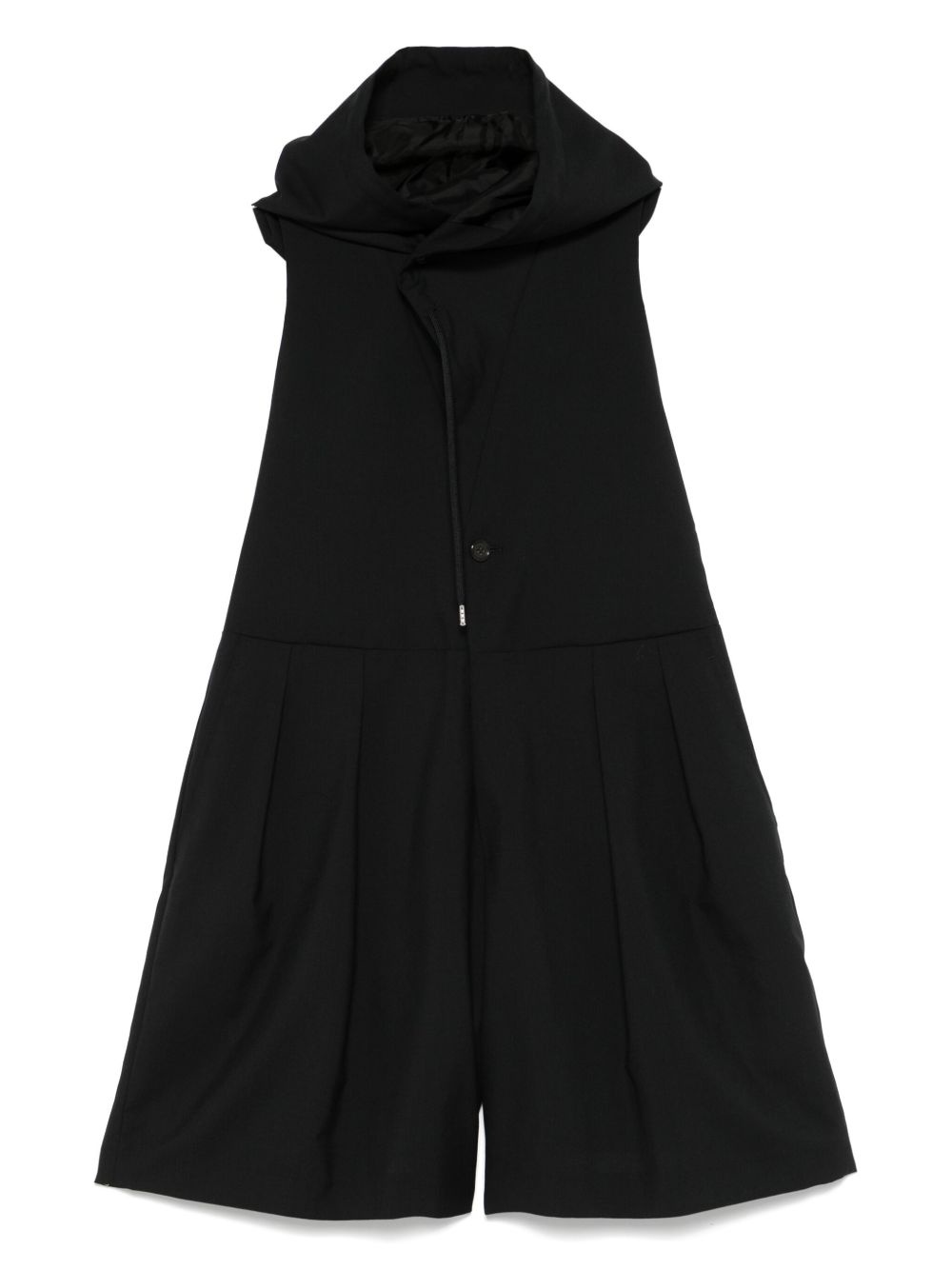 hooded playsuit Highlights - Black - Front button and zip fastening - Drawstring hood - Two side slash pockets - Rear flap pocket Imported Composition Outer: Wool 100% Lining: Cupro 100%