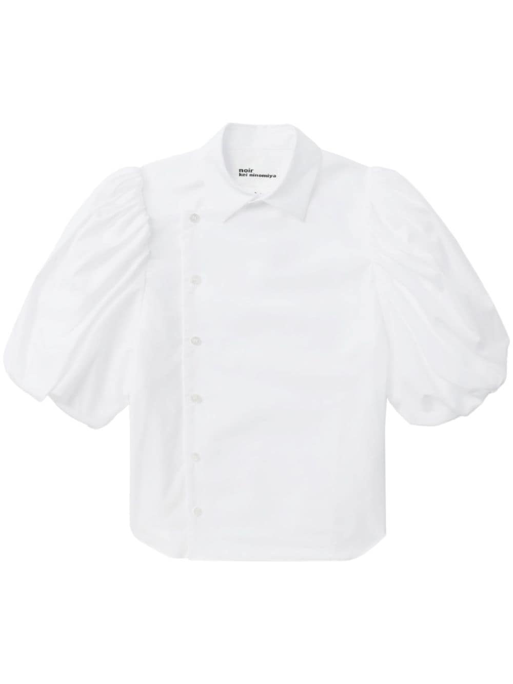 puff-sleeve blouse Highlights - White - Cotton - Pointed flat collar - Off-centre front button fastening - Short puff sleeves - Straight hem Imported Composition Cotton 100%