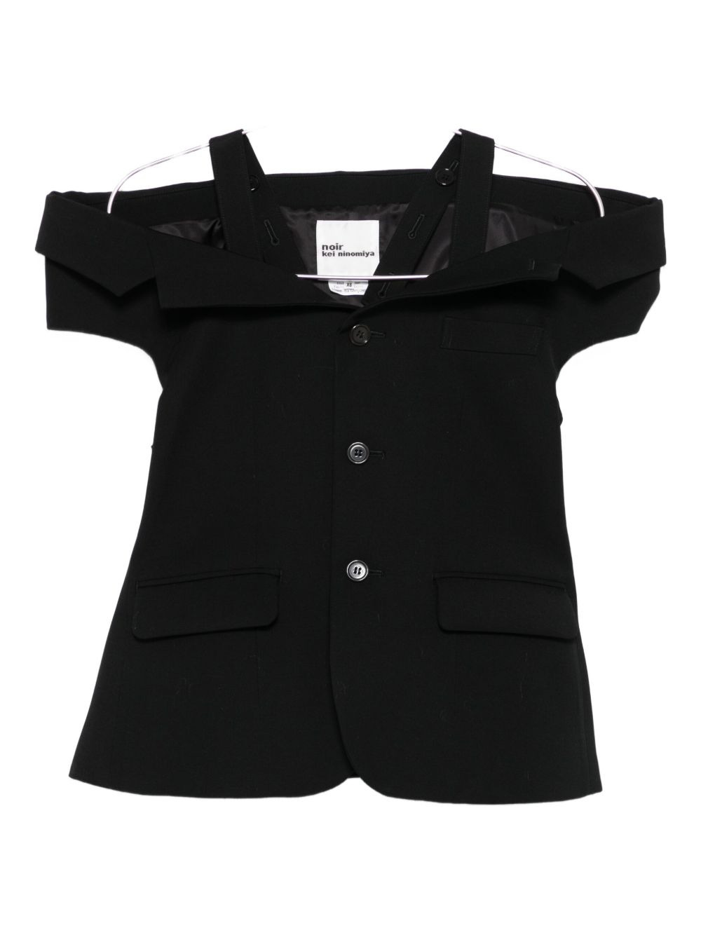 off-the-shoulder fitted jacket Highlights - Black - Off-the-shoulder neck - Button fastening - Flap pockets Imported Composition Fabric 100% SIZE & FIT Model measurements Height 5 ft 10 in(1.78 m) Bust/Chest 31.49 in(80 cm) Hips 37 in(94 cm) Waist 23.62 in(60 cm) Washing instructions Read Manufacturer Guidelines