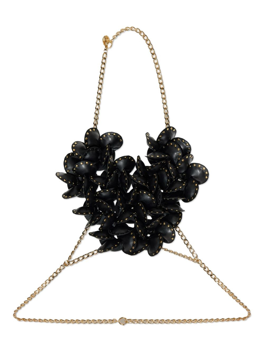 petal-embellished harness Highlights - Black - Gold-tone chain - Petal embellishment Imported Composition Polyurethane 100%, Polyester 100%