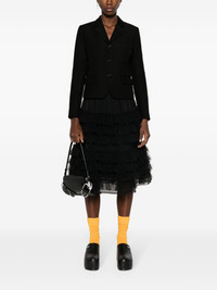ribbed-panels single-breasted blazer Highlights - Black - Wool-mohair blend - Ribbed panelling - Notched lapels - Front button fastening - Shoulder pads - Long sleeves with buttoned cuffs - Chest welt pocket - Two front flap pockets - Italian rear vents - Satin lining Imported Composition Lining: Cupro 100% Outer: Wool 88%, Mohair 12% SIZE & FIT Model measurements Height 5 ft 10 in(1.78 m) Bust/Chest 31.49 in(80 cm) Hips 37 in(94 cm) Waist 23.62 in(60 cm) FittingInformation Designed for a slim fit that sits just away from the body offering a close yet comfortable fit The internal shoulder pads offer a structured shape Made from a midweight non-stretch fabric This piece fits true to size – take your usual size