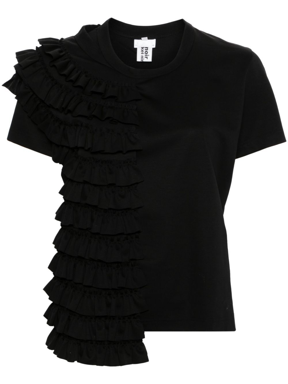 ruffled-layer cotton T-shirt Highlights - Black - Cotton - Lightweight jersey - Layered design - Ruffled overlapping panel - Crew neck - Short sleeves - Straight hem Imported Composition Cotton 100% SIZE & FIT Model measurements Height 5 ft 10 in(1.78 m) Bust/Chest 33.07 in(84 cm) Hips 36.61 in(93 cm) Waist 24.8 in(63 cm) FittingInformation Designed for a relaxed fit, this piece allows for comfort and movement when worn Made from a midweight non-stretch fabric, this piece offers minimal elasticity when worn This piece fits true to size – take your usual size