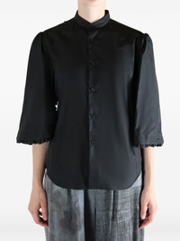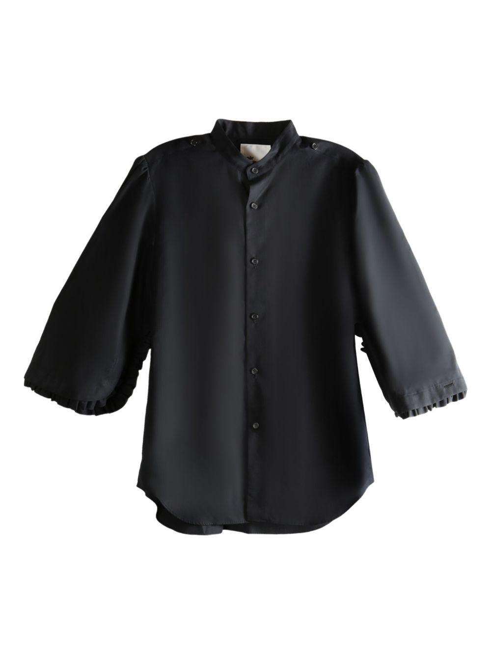 ruffled-sleeve top Highlights - Black - Button fastening - Three-quarter sleeves - Ruffled cuffs Imported Composition Cotton 100% Washing instructions Read Manufacturer Guidelines