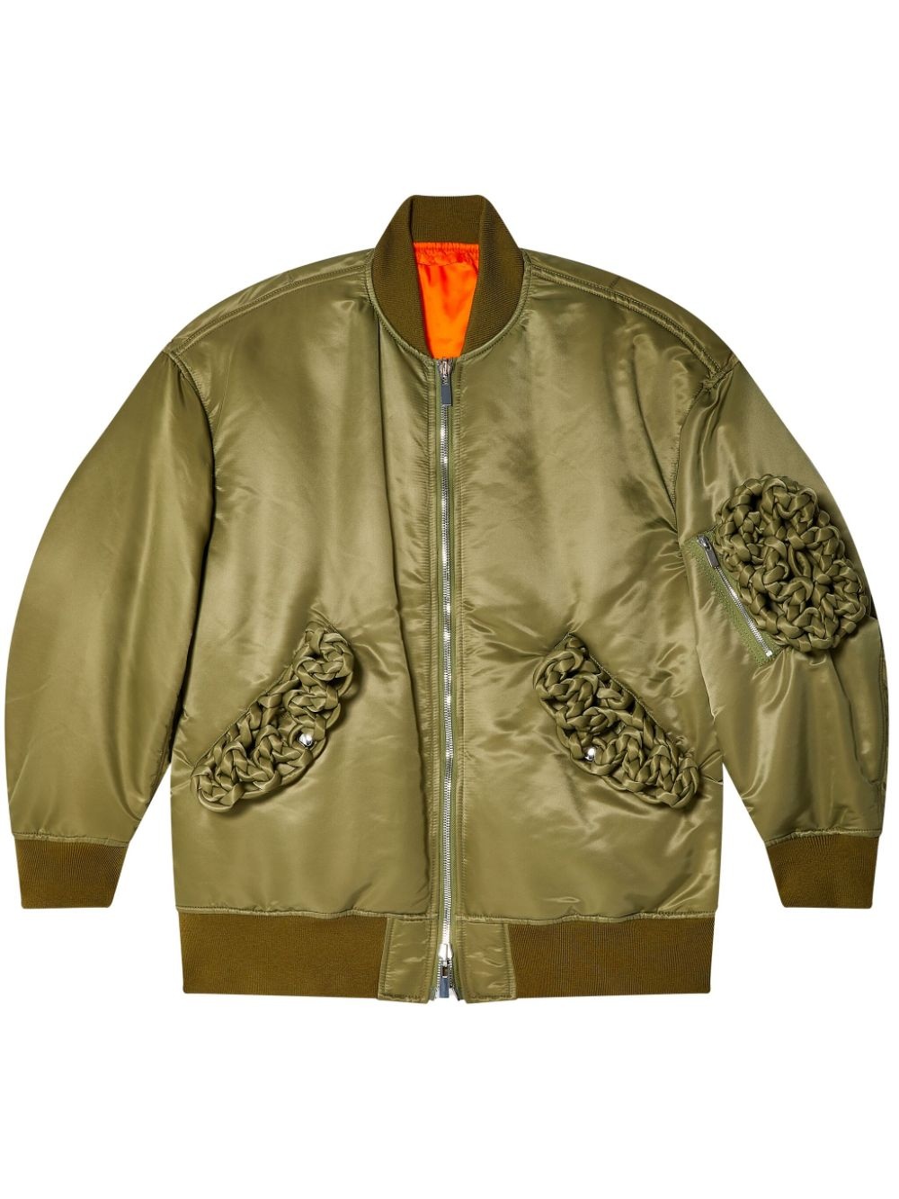 zip-up bomber jacket Highlights - Khaki - Front zip fastening - Baseball collar - Two front flap pockets - Sleeve zip pocket - Long sleeves - Elasticated cuffs and hem - Straight hem Imported Composition Nylon 100%