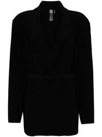 belted double-breasted blazer Highlights - Black - Stretch-design - Notched lapels - Shoulder pads - Long sleeves - Belted waist - Double-breasted button fastening - Straight hem Imported Composition Polyester 95%, Spandex/Elastane 5% SIZE & FIT Model measurements Height 5 ft 9 in(1.76 m) Bust/Chest 29.13 in(74 cm) Hips 33.07 in(84 cm) Waist 22.83 in(58 cm) FittingInformation Designed to be unstructured, offering a loose fit throughout The belt offers adjustability for fitted preferences Made from a midweight stretch fabric, this piece offers elasticity and flexibility when worn This piece fits true to size – take your usual size Washing instructions Machine Wash