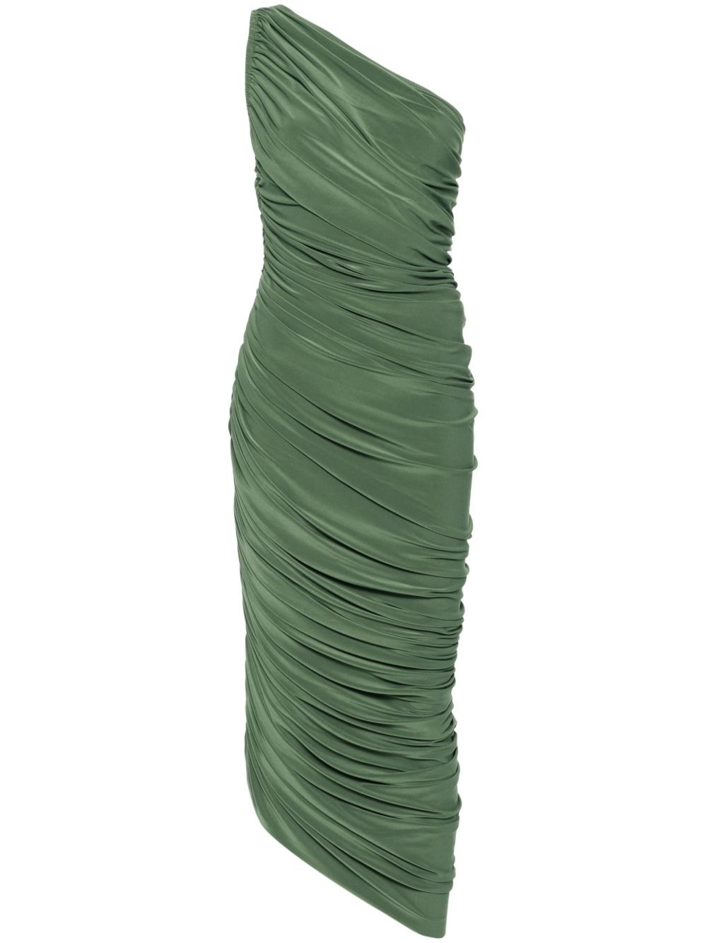 Diana draped midi dress Highlights - Olive green - Jersey texture - Draped design - Ruched detailing - One-shoulder - Sleeveless - Asymmetric hem - Mid-length - Unlined Imported Composition Polyester 95%, Spandex/Elastane 5% SIZE & FIT Model measurements Height 5 ft 10 in(1.78 m) Bust/Chest 33.07 in(84 cm) Hips 36.61 in(93 cm) Waist 24.8 in(63 cm) FittingInformation Designed for a close fit throughout Made from a midweight stretch fabric, this piece offers elasticity and flexibility when worn This piece fits true to size – take your usual size Washing instructions Machine Wash