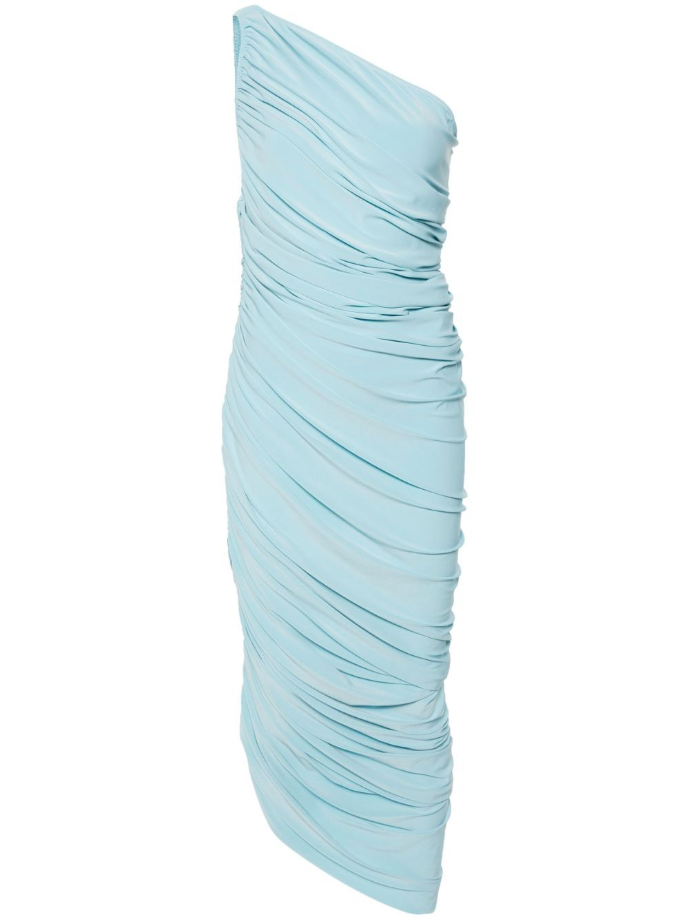 Diana one-shoulder gown Highlights - Powder blue - Stretch-jersey - One-shoulder - Sleeveless - Ruched bodice - Straight hem - Long length Imported Composition Polyester 95%, Spandex/Elastane 5% SIZE & FIT Model measurements Height 5 ft 10 in(1.78 m) Bust/Chest 33.07 in(84 cm) Hips 36.61 in(93 cm) Waist 24.8 in(63 cm) FittingInformation Designed for a close fit throughout Made from a midweight stretch fabric, this piece offers elasticity and flexibility when worn This piece fits true to size – take your usual size Washing instructions Hand Wash