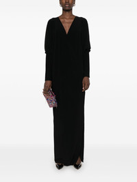 Dolman gown Highlights - Black - Stretch-jersey - Wraparound style - Draped design - Plunging v-neck - Dolman sleeves - Side slit - Unlined - Straight hem - Long length Imported Composition Polyester 95%, Spandex/Elastane 5% SIZE & FIT Model measurements Height 5 ft 11 in(1.8 m) Bust/Chest 32.67 in(83 cm) Hips 36.22 in(92 cm) Waist 24.4 in(62 cm) FittingInformation Designed for a loose fit at the chest and waist with a close fit at the hips Made from a midweight stretch fabric, this piece offers elasticity and flexibility when worn Washing instructions Machine Wash