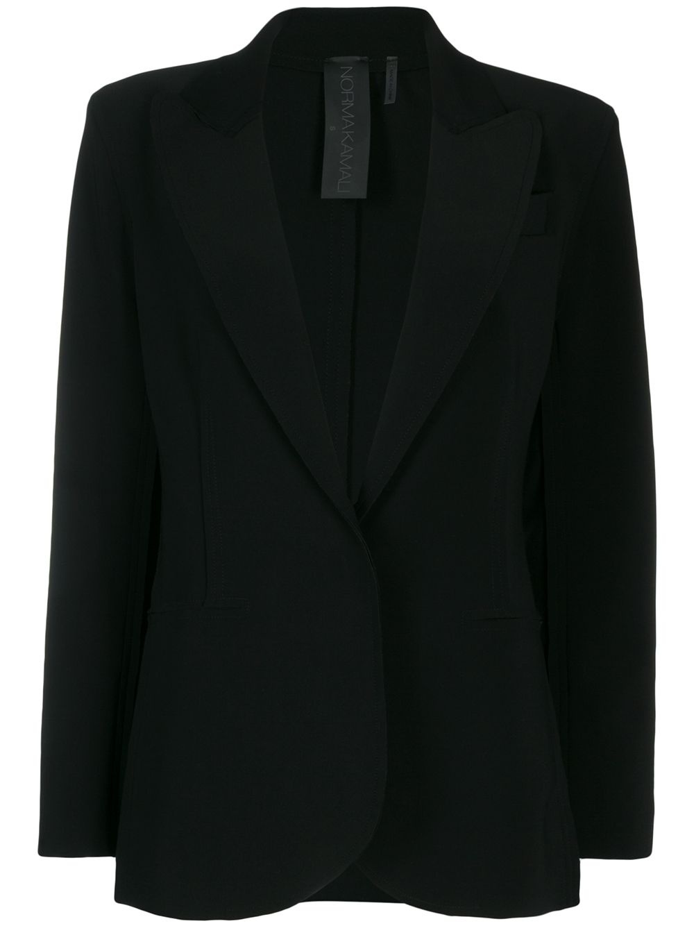 fitted blazer Black fitted blazer from Norma Kamali featuring notched lapels, a front button fastening, long sleeves and a straight hem. Imported Composition Polyester 95%, Spandex/Elastane 5% SIZE & FIT Model measurements Height 5 ft 10 in(1.77 m) Bust/Chest 35.03 in(89 cm) Hips 35.03 in(89 cm) Waist 23.62 in(60 cm) FittingInformation This piece fits true to size. We recommend you get your regular size Cut for a relaxed fit Made with a mid-weight stretch fabric Washing instructions Hand Wash