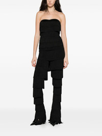 fringed strapless tank top Highlights - Black - Strapless - Sweetheart neck - Fringe detailing Made in United States Composition Polyester 95%, Elastane 5% SIZE & FIT Model measurements Height 5 ft 11 in(1.8 m) Bust/Chest 32.28 in(82 cm) Hips 36.22 in(92 cm) Waist 25.19 in(64 cm) Washing instructions Read Manufacturer Guidelines