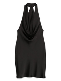 halter drape mini dress Highlights - Black - Cowl neck - Racerback - Sleeveless Imported Composition Polyester 100% SIZE & FIT Model measurements Height 5 ft 10 in(1.79 m) Bust/Chest 33.07 in(84 cm) Hips 35.82 in(91 cm) Waist 24.01 in(61 cm) FittingInformation Designed for a slim fit that sits just away from the body offering a close yet comfortable fit Made from a midweight non-stretch fabric Washing instructions Hand Wash