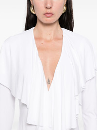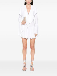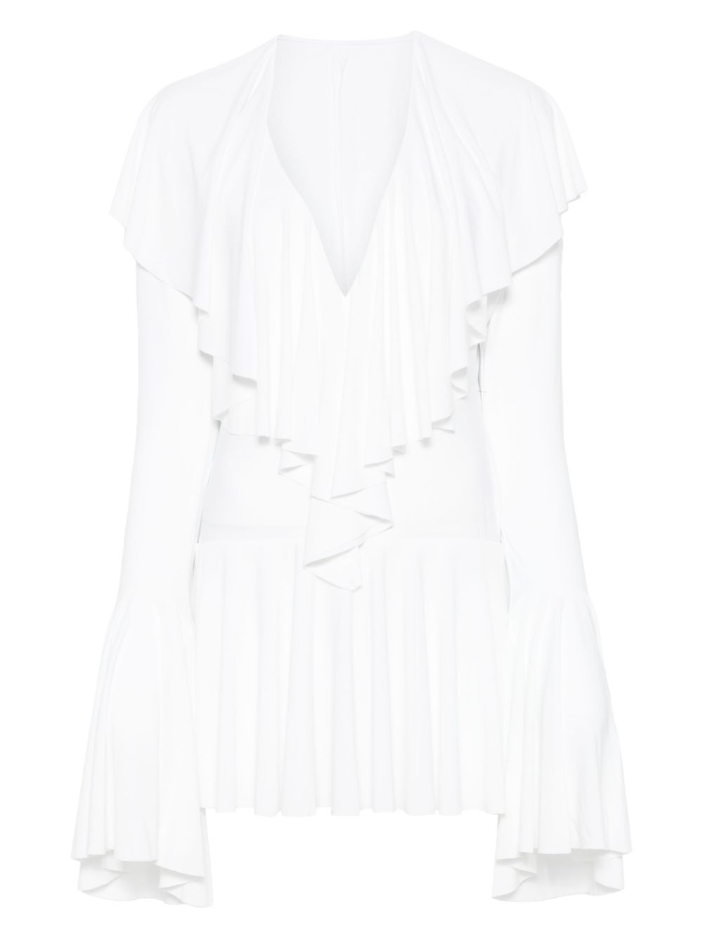 long-sleeve deep V-neck mini dress Highlights - White - Concealed press-stud fastening - Ruffled detailing - Pleat detailing - Layered effect Imported Composition Polyester 95%, Spandex/Elastane 5% SIZE & FIT Model measurements Height 5 ft 10 in(1.78 m) Bust/Chest 33.46 in(85 cm) Hips 36.22 in(92 cm) Waist 23.22 in(59 cm) FittingInformation Designed for a close fit throughout The internal briefs provide a close and supportive fit Made from a midweight stretch fabric, this piece offers elasticity and flexibility when worn Washing instructions Machine Wash