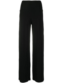 mid-rise wide-leg trousers black stretch design mid-rise wide leg ankle-length Imported Composition Polyester 95%, Spandex/Elastane 5% SIZE & FIT Model measurements Height 5 ft 10 in(1.78 m) Bust/Chest 33.07 in(84 cm) Hips 35.82 in(91 cm) Waist 25.98 in(66 cm) FittingInformation This piece fits true to size. We recommend you get your regular size Designed to be fitted at the waist and hips, loose over the leg Made with a mid-weight stretch fabric Washing instructions Machine Wash
