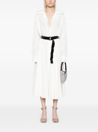 oversized shirt long dress Highlights - White - Open front - V-neck - Elasticated band - Detachable and adjustable waist belt - Drop shoulder Imported Composition Polyester 100% SIZE & FIT Model measurements Height 5 ft 9 in(1.76 m) Bust/Chest 31.1 in(79 cm) Hips 35.03 in(89 cm) Waist 24.4 in(62 cm) FittingInformation Designed for a close fit at the chest and waist with a loose fit at the hip The belt offers adjustability for fitted preferences Made from a midweight non-stretch fabric Washing instructions Machine Wash