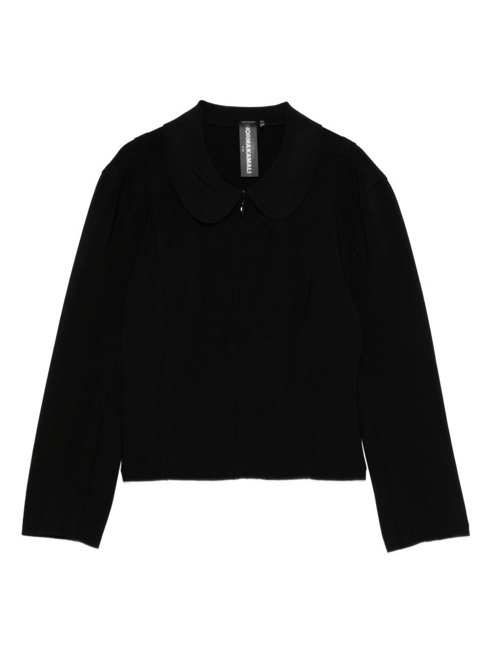 peter pan-collar long-sleeve jacket Highlights - Black - Front zip fastening - Long sleeves - Straight hem Imported Composition Polyester 95%, Spandex/Elastane 5% Washing instructions Machine Wash