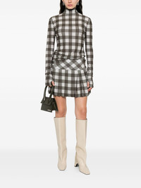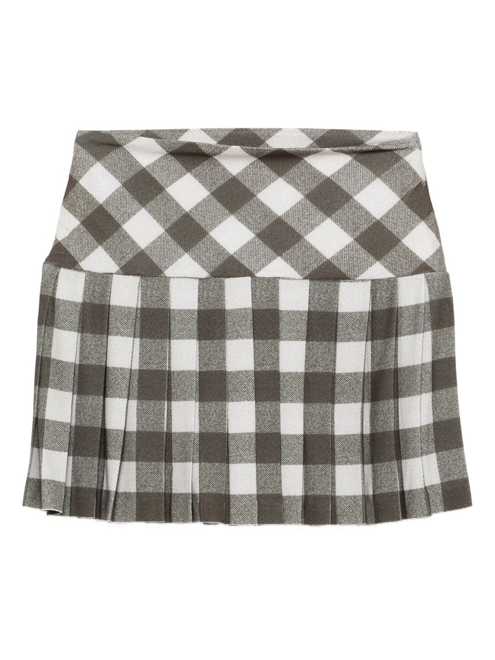 pleated checked skirt Highlights - Khaki - Gingham check pattern - Pleated skirt - Straight hem Imported Composition Polyester 95%, Elastane 5% SIZE & FIT Model measurements Height 5 ft 9 in(1.75 m) Bust/Chest 32.67 in(83 cm) Hips 36.22 in(92 cm) Waist 24.8 in(63 cm) Washing instructions Dry Clean Only